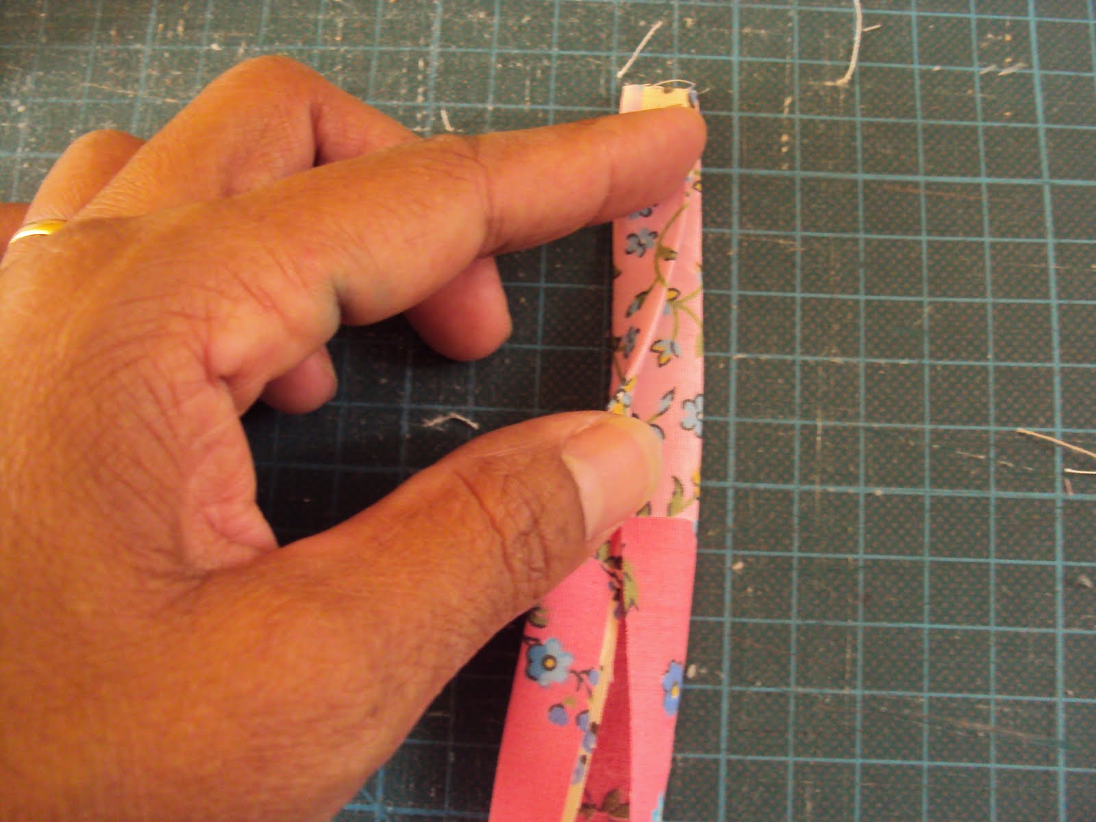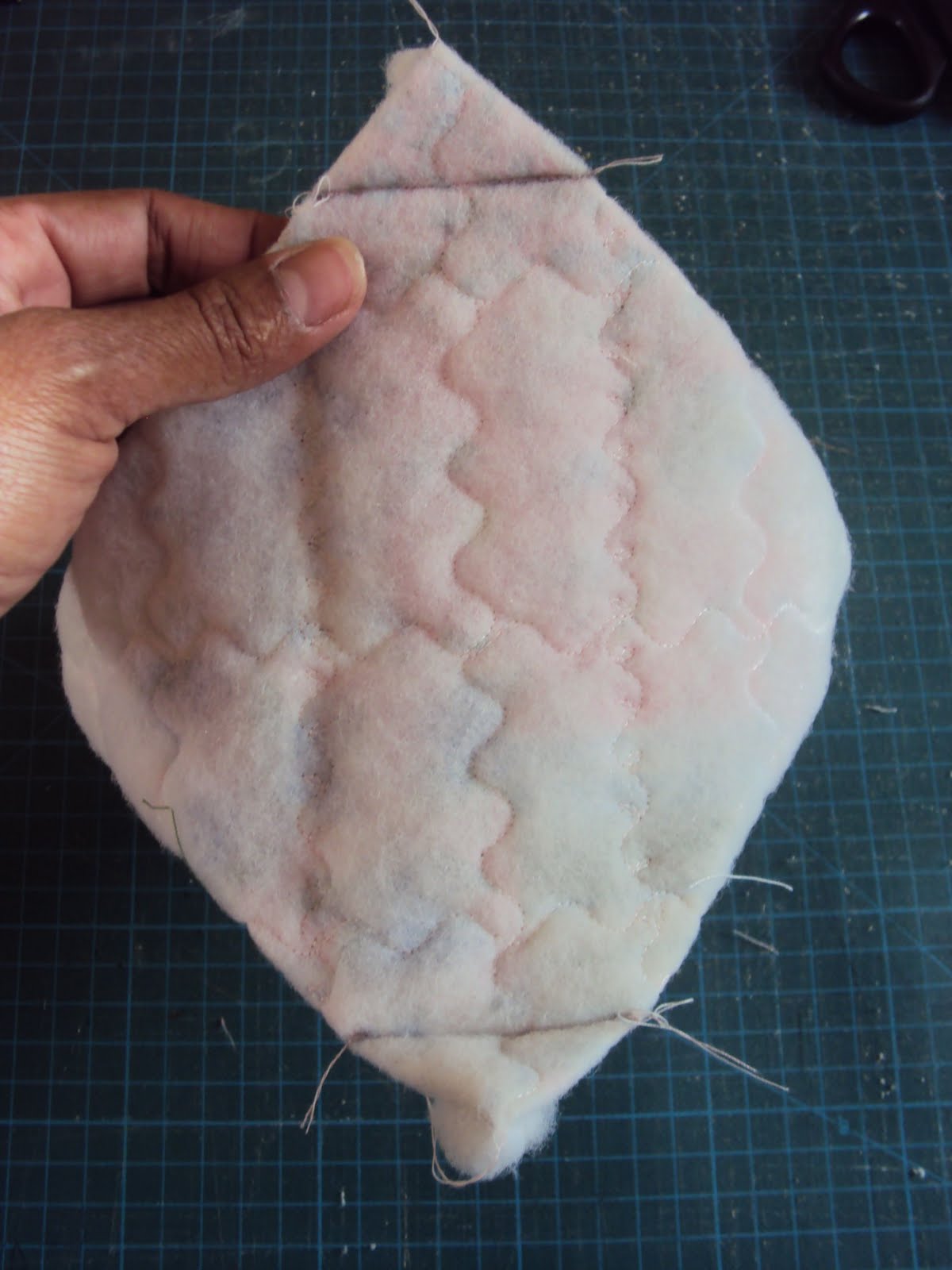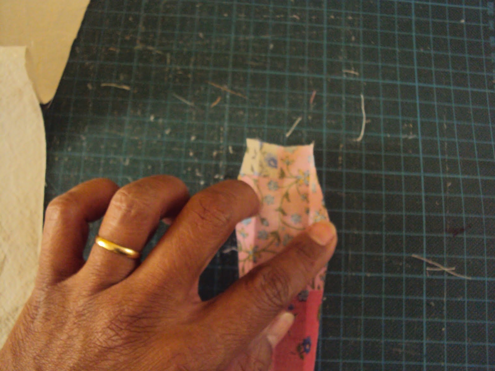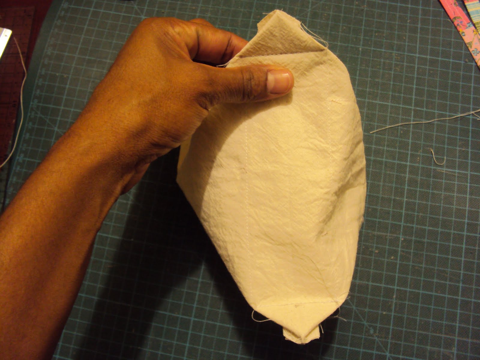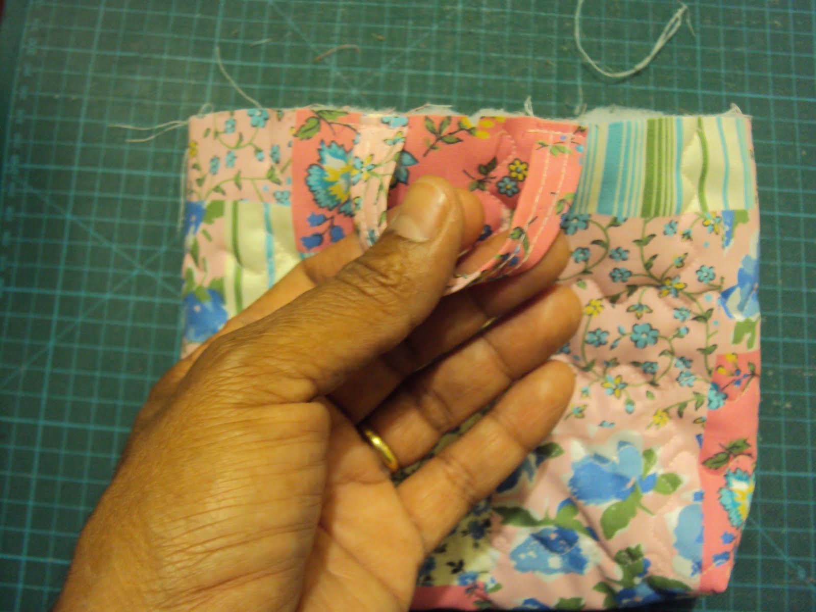 (note que as duas costuras que fizemos no retangulo menor com 5 cm de fundo na horizontal dá exatamente o tamanho de 5cm)