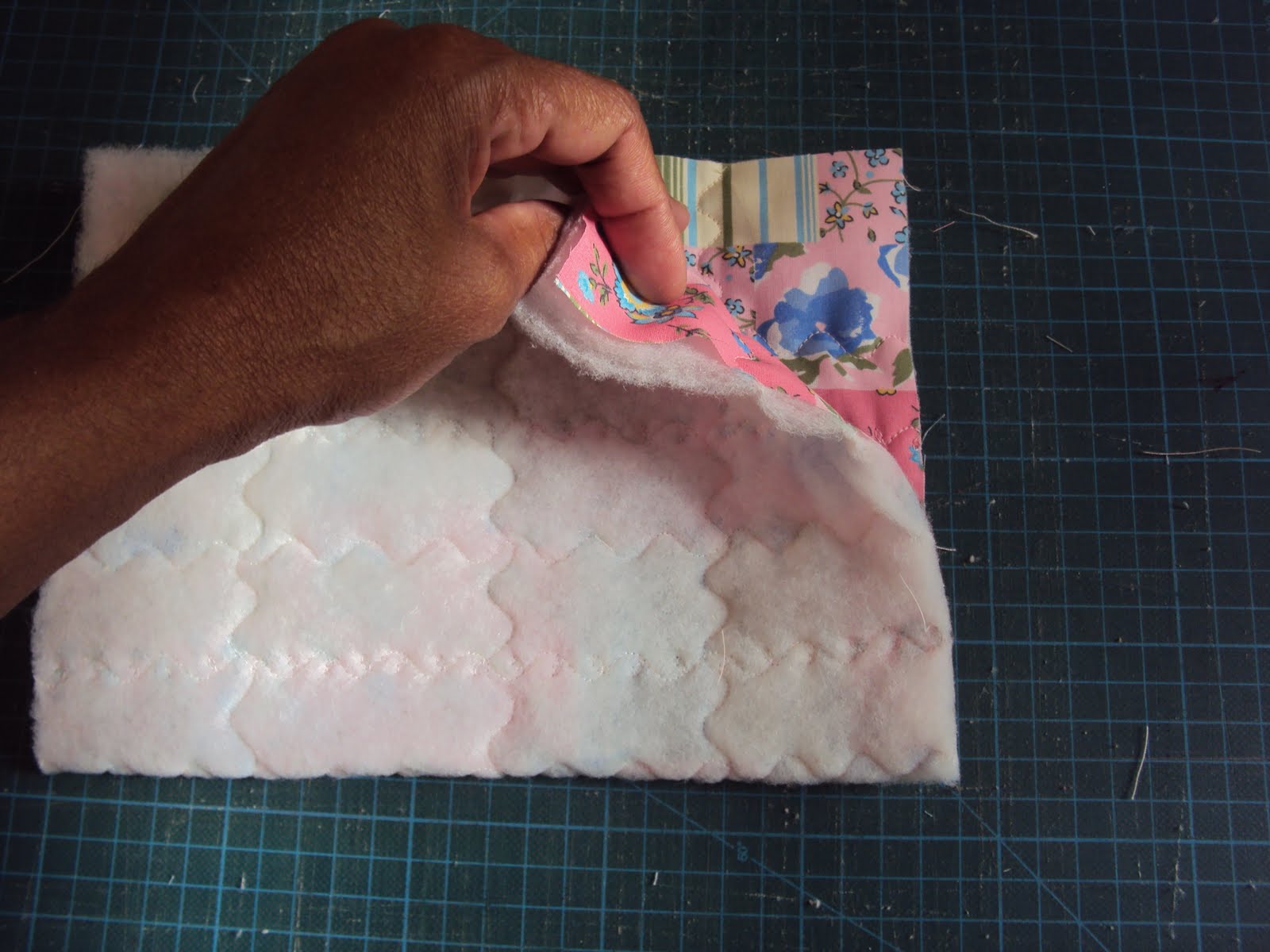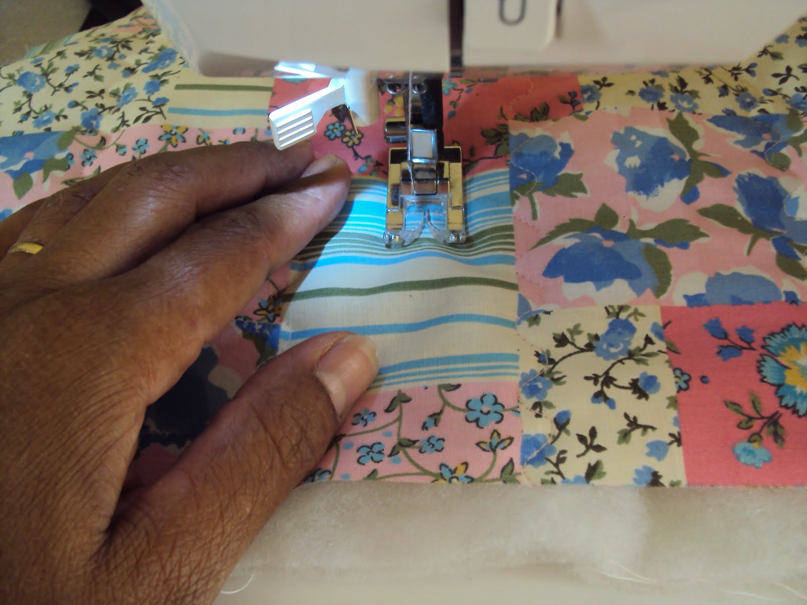 faça um quilt à máquina pra prender a manta no tecido principal